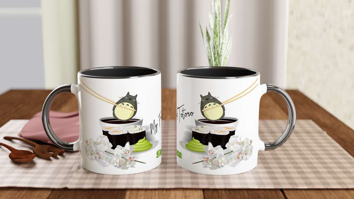 Mug en céramique blanche 325 ml (11 oz) avec intérieur coloré sushi decostickerstore